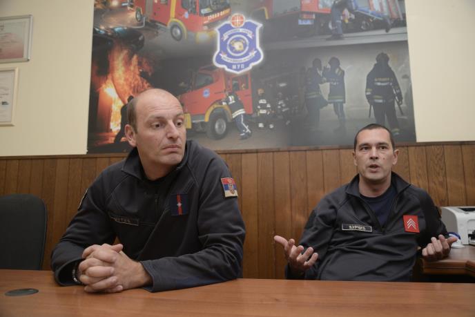 Komandir Miloš Majstorović objašnjava da je na intervenciji na Novom Beogradu bilo 27 vatrogasca sa sedam vozila, iz tri vatrogasne jedinice i to: Zemun, Voždovac i Košutnjak, kao i da je na terenu bilo i vozilo za spašavanje sa visina ali da nažalost nisu imali elementarne uslove da to vozilo nameste.