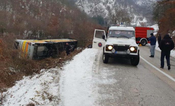 Saobraćajna nesreća dogodila se jutros oko 8 časova na magistralnom putu između Nevesinja i Gacka, a pretpostavlja se da je zbog guste magle i loše vidljivosti autobus sklizao sa puta i prevrnuo se.