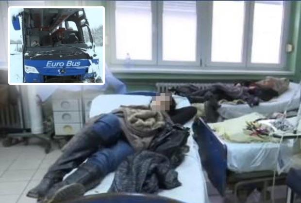 Prema rečima nadležnih u KC Niš, trenutno stanje povređenih nije životno ugrožavajuće, ali su lekari uzdržani od prognoza zbog težine njihovih povreda. Stanje povređenih se prati neprekidno. Tri osobe su poginule a još 32 su povređene u stravičnom udesu koji se desio oko 1.45 časova na auto putu u blizini isključenja za Leskovac, u autobusu makednoskih registarskih oznaka koji je sleteo sa puta i prevrnuo se. Lekari niške Hitne pomoći koji su sa kolegama iz Leskovca učestvovali u zbrinjavanju povređenih putnika, na licu mesta zatekli su stravične prizore: troje putnika stradalo je na licu mesta u autobusu koji je ležao prevrnut u snežnoj mećavi.