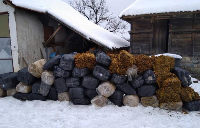 Policija je u domaćinstvu osumnjičenog, u okolini Krupnja, u dvorištu pronašla 52 bale sušenog duvana u listu i mašinu za rezanje duvana sa noževima sakrivene u balama sena.