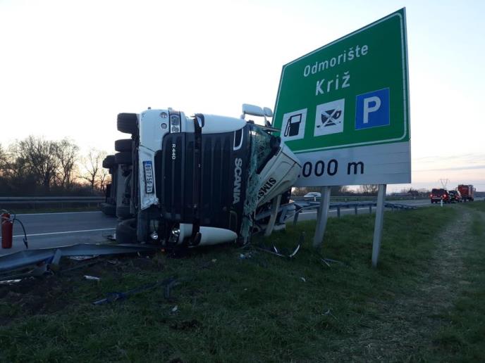 Kamion srpskih registarskih tablica prevrnuo se kod Zagreba, na autoputu A3, a u nesreći je povređena jedna osoba.