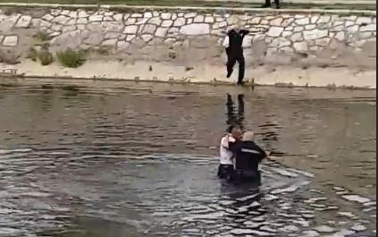 Prema snimku koji je na Fejsbuku objavila građanka koja je svedočila hapšenju, nekoliko policajaca moralo je i da uđe u Nišavu da bi beguncu stavili lisice.