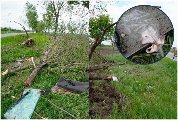 Nekoliko sati nakon nesreće zatečeni su delovi vozila, razbijeno staklo i svatovski cvetić.