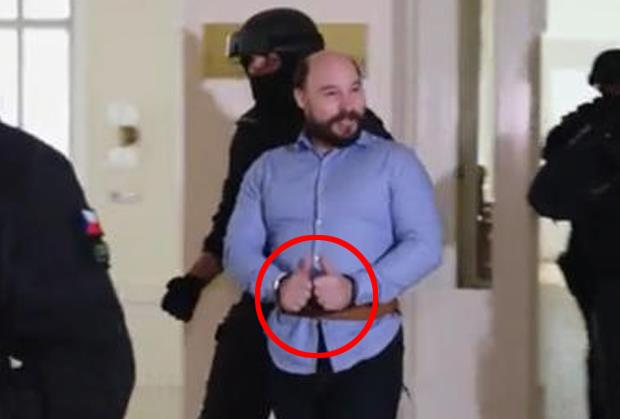 On je uz pratnju do zuba naoružanih specijalaca uveden u sudnicu, a onda je svima pokazao podignute palčeve, pokazujući da se dobro oseća.
