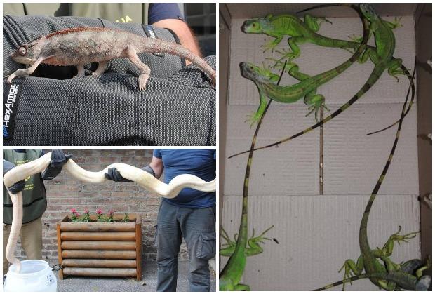 Na teritoriji Pančeva zaplenjena su dva kajmana, četiri pitona, četiri iguane, jedan loptasti piton i jedan kameleon, a na teritoriji Novog Sada jedna iguana, dva primerka loptastog pitona, primerak kolumbijske dugine boe, jedan karpet piton, dva primerka tarantule i jedan burmanski piton, saopštila je Pokrajinska vlada.