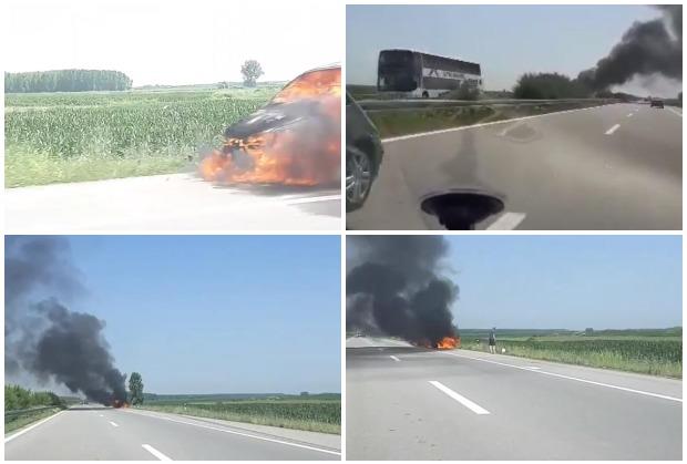 Auto-putem se širi gusti crni dim, te se savetuje dodatan oprez.