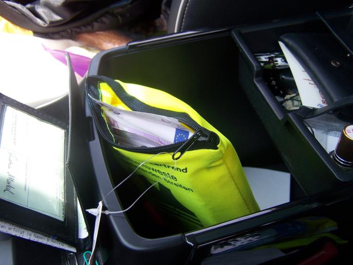 Tokom kontrole automobila, u torbici za zaštitni prsluk, u kaseti između prednjih sedišta, otkriveno je 25.500 evra za koje putnik nije imao Potvrdu o unosu stranog efektivnog novca u Srbiju.