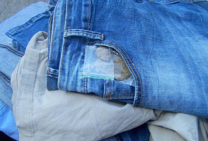 Pregledom gepeka jednog „BMW-a“ francuskih registracija carinski službenici su skriveni sadržaj pronašli u džepu farmerki spakovanih u putnu torbu.