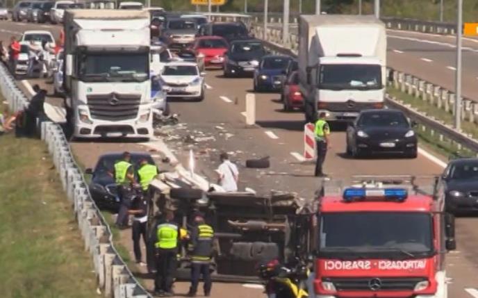 TEŠKA NESREĆA NA AUTO-PUTU KOD ALEKSINCA: Sudar kombija, kamiona i automobila, jedan poginuo! Ima i povređenih (VIDEO)