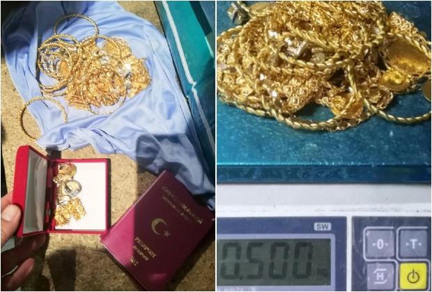 Otvorivši neseser, carinici su u njemu zatekli platnenu krpu u koju je bilo zamotano oko 30 različitih komada zlatnog nakita: nekoliko ogrlica sa dukatima težine i do 60 grama, oko 15 narukvica teških preko 400 grama, 14 dukata različite veličine i težine i šest pari minđuša.