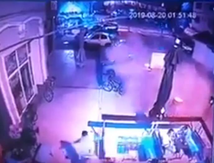 Na internetu je objavljen snimak sa sigurnosne kamere, na kojem se vidi kako gosti mirno sede u bašti, a potom se začuo prasak i automobil koji u punoj brzini udara u parkirano vozilo, a potom u betonsku žardinjeru, koje da nije bilo, najverovatnije bi uleteo u baštu kafića.