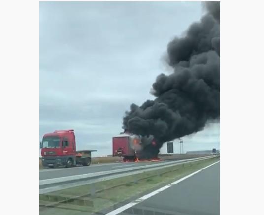 Prikolica se zapalila, a saobraćaj je u prekidu. Kako je JP "Putevi Srbija" objavilo na svom zvaničnom Tviter nalogu, saobraćaj se usmerava preko Šimanovaca.