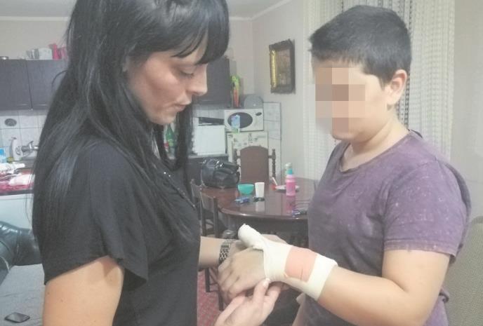 Njegova majka D. K. (ime i prezime poznato redakciji) kaže da ga je našla okrvavljenog lica, izgrebanog i s vidno oteklom rukom, a razlog svega toga jeste to što je njen sin, kaže - odbio da se bije!