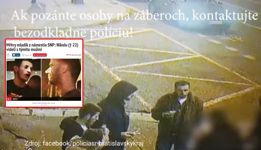 Slovačka policija apelovala je na građane koji prepoznaju muškarce na snimku da se odmah jave. Policija je emitovala snimak na kojem se vidi hronološki sled događaja, kuda se Nikola kretao i sa kim je sve bio.