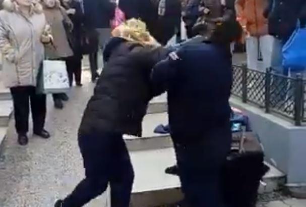 Žena je na vidikovačkoj pijaci prodavala robu za koju se navodi da je nelegalna, a kada je milicajka počela da cima njen kofer, stvari su iz njega pospadale zbog čega ju je žena udarila.