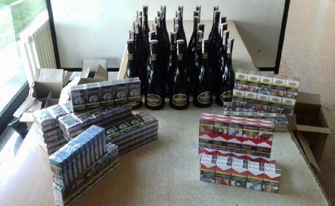 Carinici Srbije zaplenili su 30 litara rakije i 19 boksova cigareta u kombiju bugarskih državljana na graničnom prelazu Gradina, saopštila je danas Uprava carina.