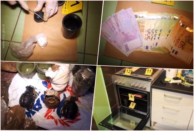 Prilikom pretresa pomoćnih prostorija kuće u Boljevcima, koje koristi osumnjičeni, policija je zaplenila oko dva kilograma heroina, 107 grama marihuane, 103 grama kokaina, pištolj „CZ - 7,65“, revolver sa šest komada municije, automatsko oružje marke “hekler koh“ sa dva okvira i 20 komada municije, oko 500 grama plastičnog eksploziva, tri ručne i jednu dimnu bombu, eksplozivnu napravu sa detonatorom, 13 detonatorskih kapisli i 6.500 evra.
