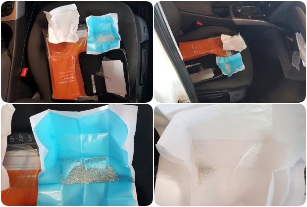 Mada je bio kategoričan da nema ništa da prijavi, ipak je izdvojen za detaljan pregled. Tom prilikom je u kaseti ispred suvozačkog sedišta njegovog automobila pronađeno nekoliko kesica sa dragim kamenjem.
