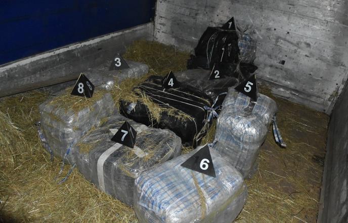Policija je oko 140 kilograma marihuane pronašla prilikom kontrole teretnog vozila, kojim je upravlјao osumnjičeni A.J., u tovarnom delu ispod slame i upakovanu u pakete i potom u osam vreća.