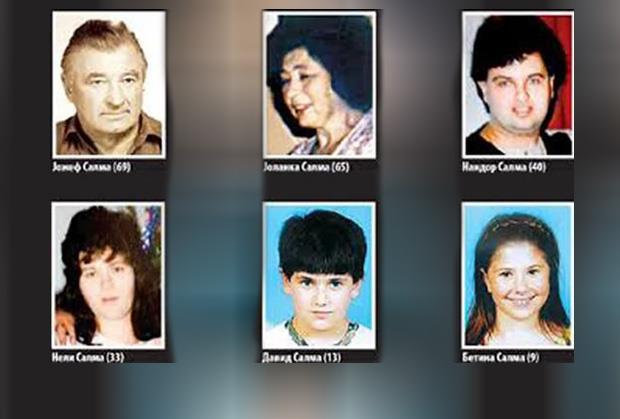 Prema onome što je saopšteno neposredno posle stravičnog zločina, Jožef Salma i njegova supruga Jolan usmrćeni su u svojoj kući sa više uboda nožem i presecanjem grkljana. U kući s potkrovljem, u istom dvorištu, ubijeni su njihov sin Nandor, snaja Neli i njihovo dvoje dece David i Beti, hicima iz pištolja kalibra 7,65 milimetara.