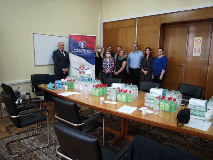 Milan Pekić, direktor Kancelarije za borbu protiv droga, uručio je pakete pomoći predstavnicima organizacija civilnog društva koje pružaju usluge prevencije, rehabilitacije i resocijalizacije osoba koje su u problemu s drogama. Uzimajući u obzir okolnosti u kojima se nalaze, kao i mere propisane od strane struke, predstavnicima ovih organizacija uručene su zaštitne maske, rukavice i dezinfekciona sredstva.