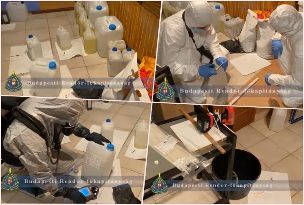 Na video-snimcima koje je pribeležila mađarska policija vide se kanisteri sa nedozvoljenim supstancama, ali i improvizovane alatke za mešanje droge u crnim kantama, fiksirane za stolove.