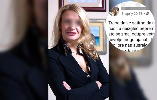 "Treba da se setimo da nismo jedini koji su se našli u naizgled nepremostivoj nevolji. Baš kao što se zmaj odupre vetrovima, tako i nas nevolje mogu ojačati. I kao što se na hiiljade ljudi pre nas susrelo sa istom sudbinom i preživelo, tako možemo i mi. Dr R. Brasch - i to će proći " napisala je na svom Fejsbuk proilu.