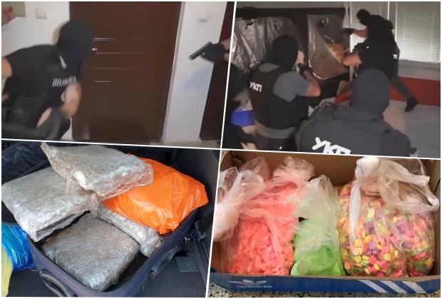 Pretresom stana u kojem boravi M. M. policija je pronašla oko 15 kilograma marihuane, oko kilogram supstance MDMA, oko 40 litara amfetaminskog ulja, oko 200 kilograma kofeina, jednu pušku sa prigušivačem i 19 komada municije.