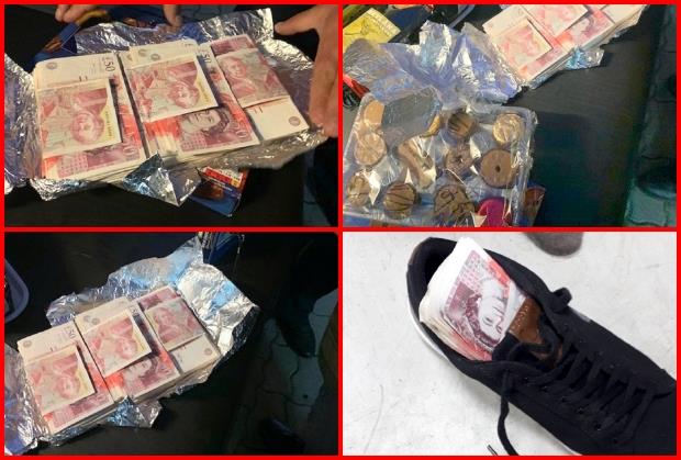 Pored toga, u dve kutije čaja putnik je sakrio 4.000 funti, dok je ispod uložaka u njegovim patikama pronađeno još 8.000 funti.