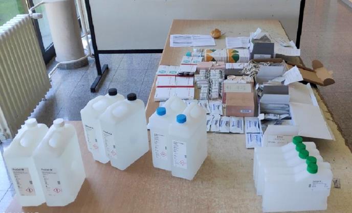 U prtljažniku su pronađene torbe pune lekova za lečenje hepatitisa B, dijabetesa, kao i serološki testovi za helikobakteriju i testovi za otkrivanje urinarnih infekcija.