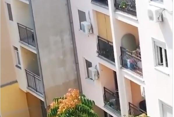 On je pao na vazdušni jastuk, koji je bio postavljen ispred zgrade.
