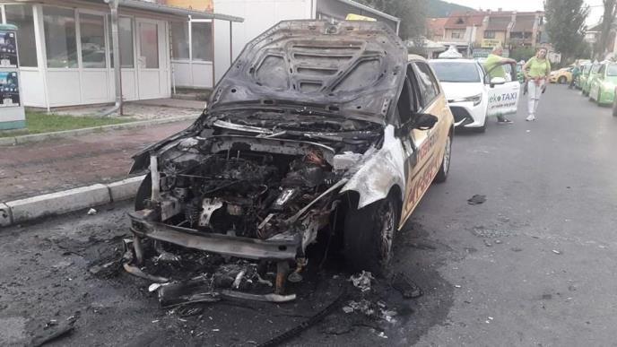 Na taksi stajalištu u naselju Trošarina zapalilo se taksi vozilo, a vozač se spasao tako što je odmah izašao iz vozila kada se u prednjem delu začula eksplozija.