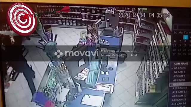 Na snimku se vidi kako razbojnici upadaju na pumpu, udaraju pištoljem radnika i kupe novac, cigarte i pića.