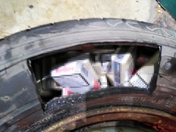 Potom je u zadnjem delu vozila, u unutrašnjosti rezervne gume koja se nalazila između navoza za šlep, otkriveno još 114 paklica cigarta „marlboro“, „davidov“ i „vinston“.