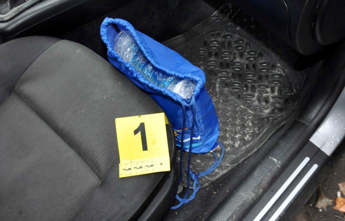 Policija je prilikom pretresa vozila folksvagen pasat u kojem su se nalazili osumnjičeni I. A. i D. R. pronašla u torbi 987 grama marihuane, spakovane u jedan paket.