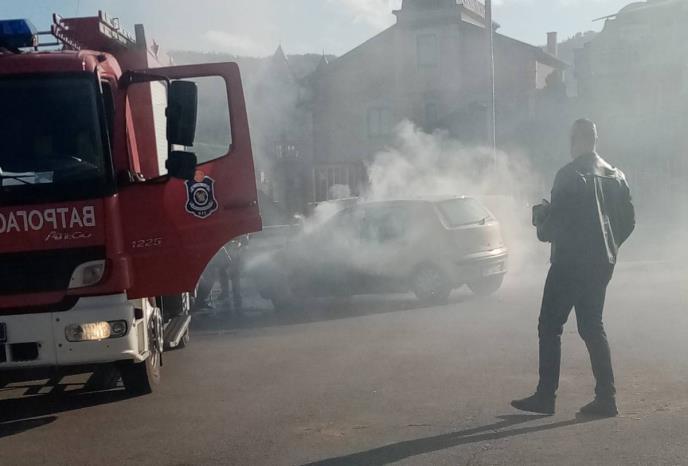 Automobil u kom su se nalazili muškarac i žena, zapalio se danas nešto posle 13 časova na glavnoj pijaci u Prokuplju