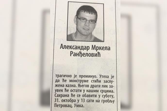 Komšije su ubijenom Ranđeloviću dale i čitulju u novinama.