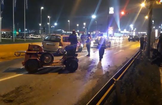Na Zrenjaninskom putu, negde oko 16 časova sudarili su se automobil i samohodna mašina za sečenje drva.