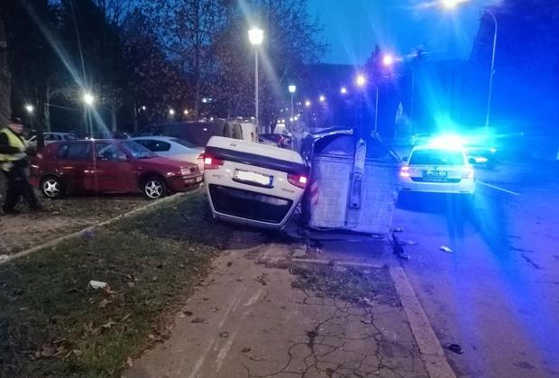 Policija utvrđuje kako je došlo do ove nesreće posle koje se jedno vozilo prevrnulo i završilo na krovu iza kontejnera, a drugo u dvorištu obližnjih zgrada.