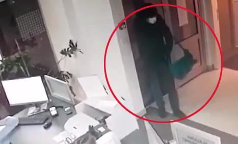 Na društvenim mrežama se pojavio snimak nadzorne kamere na kome se vidi kako muškarac sa zaštitnom maskom i plavim rancem u rukama ulazi u ekspozituru.