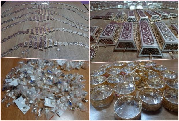 Privremeno je zadržano oko 1.000 različitih ogrlica, narukvica, prstenja, setova nakita, lančića, minđuša i pojaseva od bižuterije, kao i 55 muških satova poznatih robnih marki u čiju se originalnost sumnja.