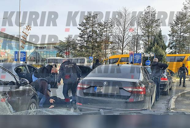 Pogledajte fotografiju koju je čitalac Kurira poslao našoj redakciji na kojoj se vidi kako policija privodi Belivuka, Miljkovića i još petoricu koju su ih sačekali na aerodromu.