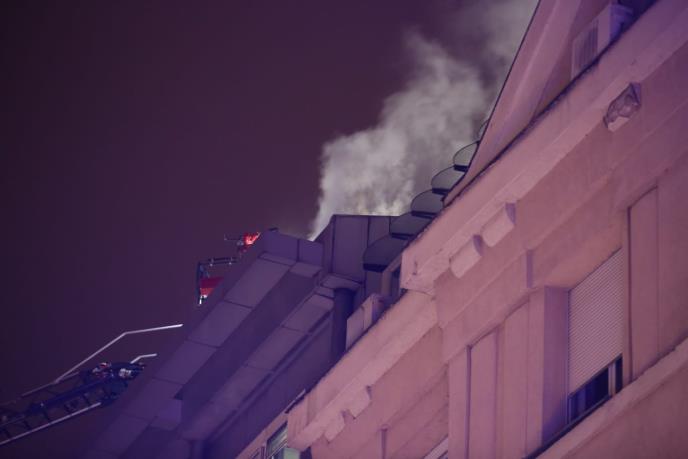 U toku je evakuacija stanara zgrade. Ekipe vatrogasaca upravo otvaraju krovnu konstrukciju.