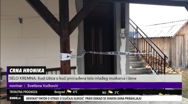 U selu Kremna pronađena su tela mlađeg muškarca i žene rodom iz Požege. Kako Kurir saznaje, oni su u mesto nadomak Užica došli na odmor. Istražni organi ispituj uzrok smrti muškarca, a pretpostavlja se da je stradao od strujnog udara do koga je došlo zbog neispravnog bojlera.