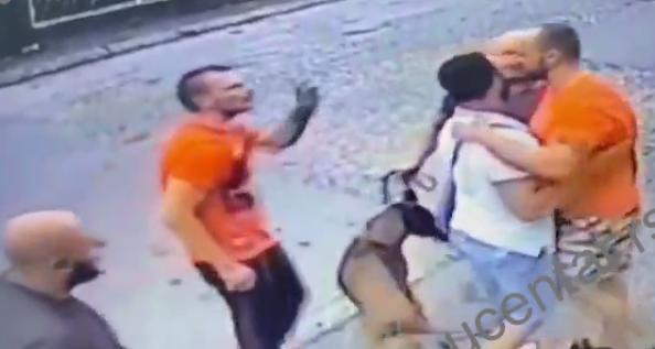 Na snimku se vidi i kako su stariji čovek sa grabuljama i žena pojavili i stali u zaštitu napadnutog čoveka.