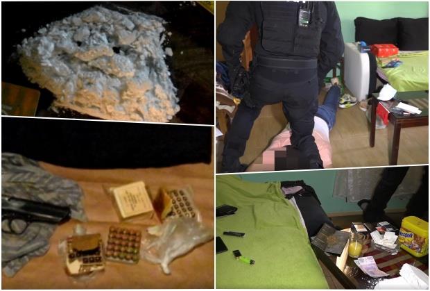 Prilikom pretresa stana i porodične kuće u Beogradu, koje su osumnjičeni koristili, policija je pronašla pet kilograma kokaina, 400 grama heroina i dva kilograma marihuane, kao i pištolj i 200 komada municije i 24.000 evra.