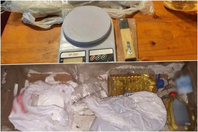 Pretresom prostorija koje osumnjičeni koristi, policijski službenici pronašli su oko četiri kilograma amfetamna, oko šest litara amfetaminskog ulja, oko kilogram kofeina, elektronsku vagicu za precizno merenje i vakuum aparat za pakovanje.