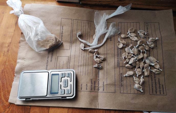 Policija je u opštini Palilula pretresom stana i drugih prostorija koje koristi N. J. zaplenila 56 kesica sa praškastom materijom za koju se sumnja da je heroin, dok je kod A. J. pronašla vagicu za precizno merenje, kao i više praznih kesica.