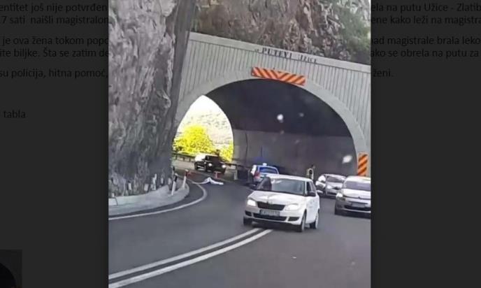 UŽICE - Žena čiji identitet još nije potvrđen tokom popodnevnih sati pala je niz strminu kod prvog tunela na putu Užice - Zlatibor pravo na magistralu i ostala na mestu mrtva! Vozači koji su oko 17 sati naišli magistralom ostali su zatečeni jezivim prizorom - telom mrtve starije žene kako leži na magistrali.