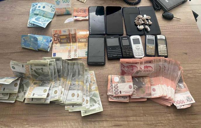 U drugoj akciji, policijski službenici su na Voždovcu u automobilu kojim je upravljao S. J. zaplenili 10 kesica sa praškastom materijom za koju se sumnja da je heroin, 10 mobilnih telefona, kao i 162.310 dinara.